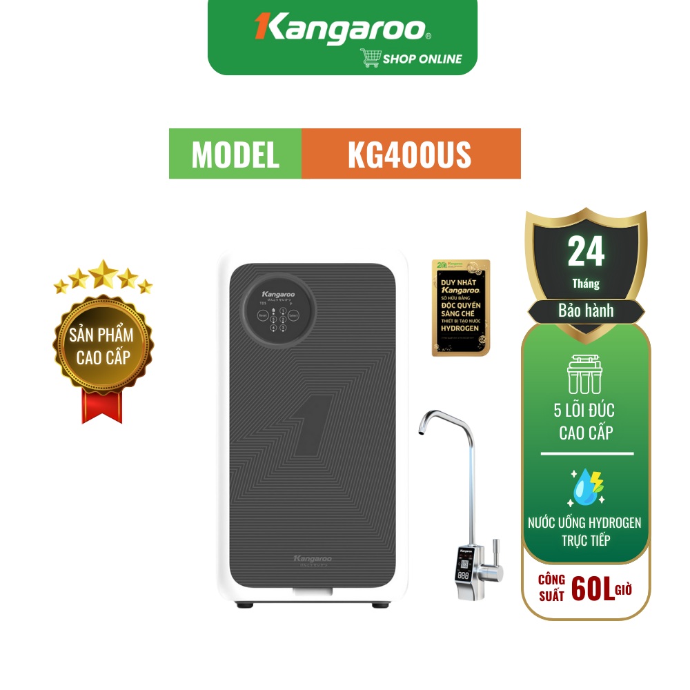 Kangaroo là thương hiệu duy nhất được cấp bằng sáng chế độc quyền về thiết bị tạo nước Hydrogen. Khám phá ngay máy lọc nước Kangaroo KG400US để nâng cao sức khỏe cho cả gia đình bạn!